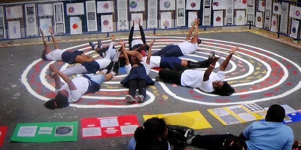Space needed: room for a 12-foot indoor square canvas as well as an outdoor labyrinth space, a paint clean up area and student desk space for activities